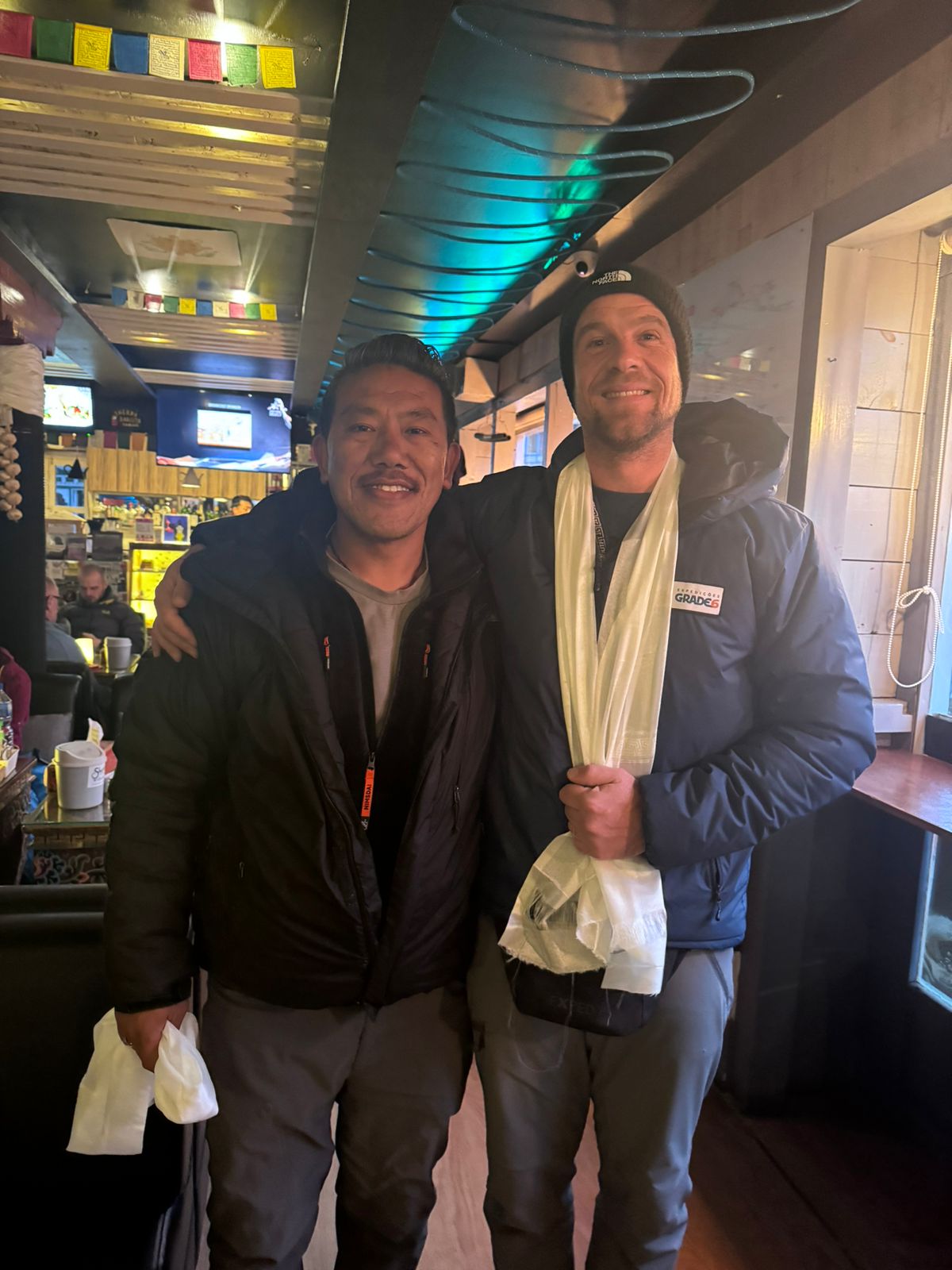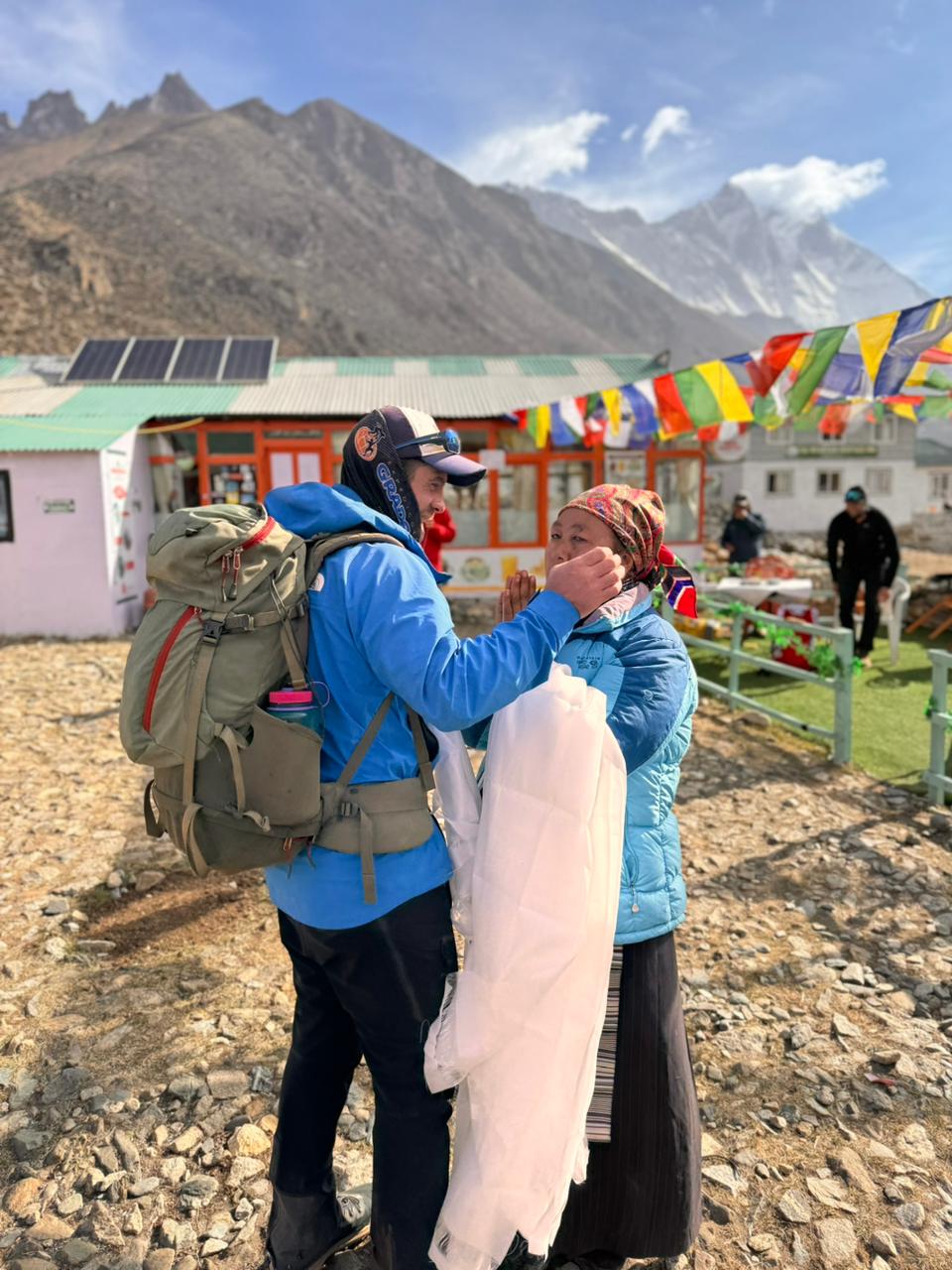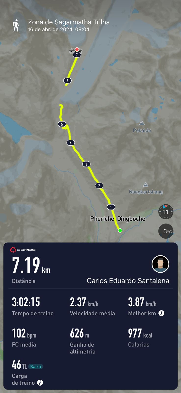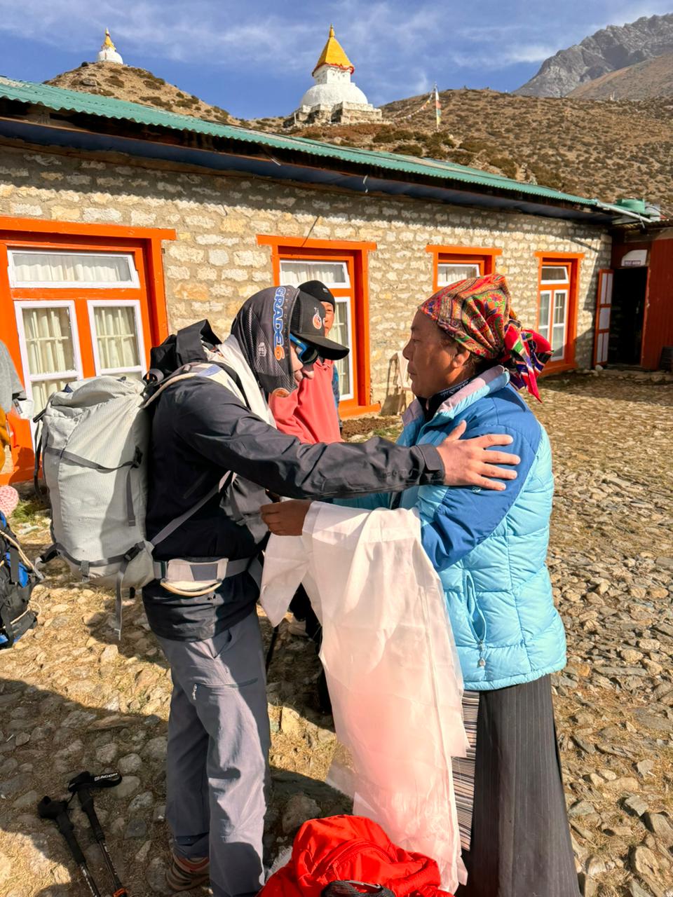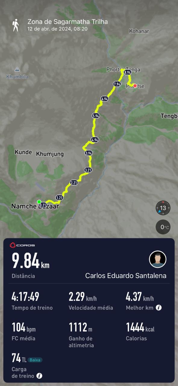 Eles nos recebem sempre com grande hospitalidade, a gente é sempre muito bem recebido, com muito carinho, e é uma energia totalmente diferente. O dia foi composto de uma primeira subida, uma ascensão de uns 400m de desnível, depois despencamos mais uns 300m até o rio e voltamos a subir 200m até chegar no vilarejo de Phortse, a 3850m.